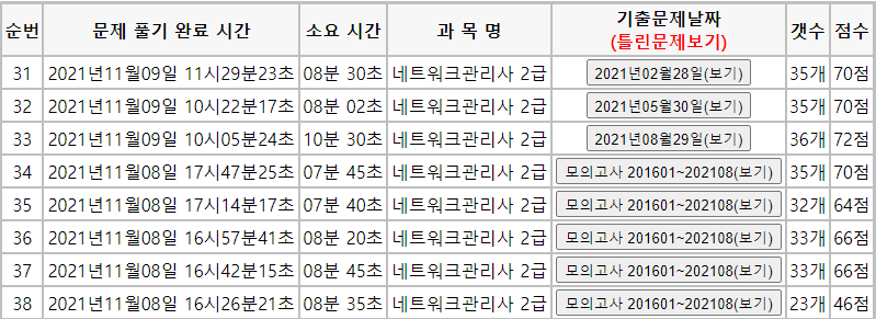 시험이 끝난 후 네트워크 관리사를 주관하는 한국정보통신자격협회에 문제와 답안이 게시되었는데