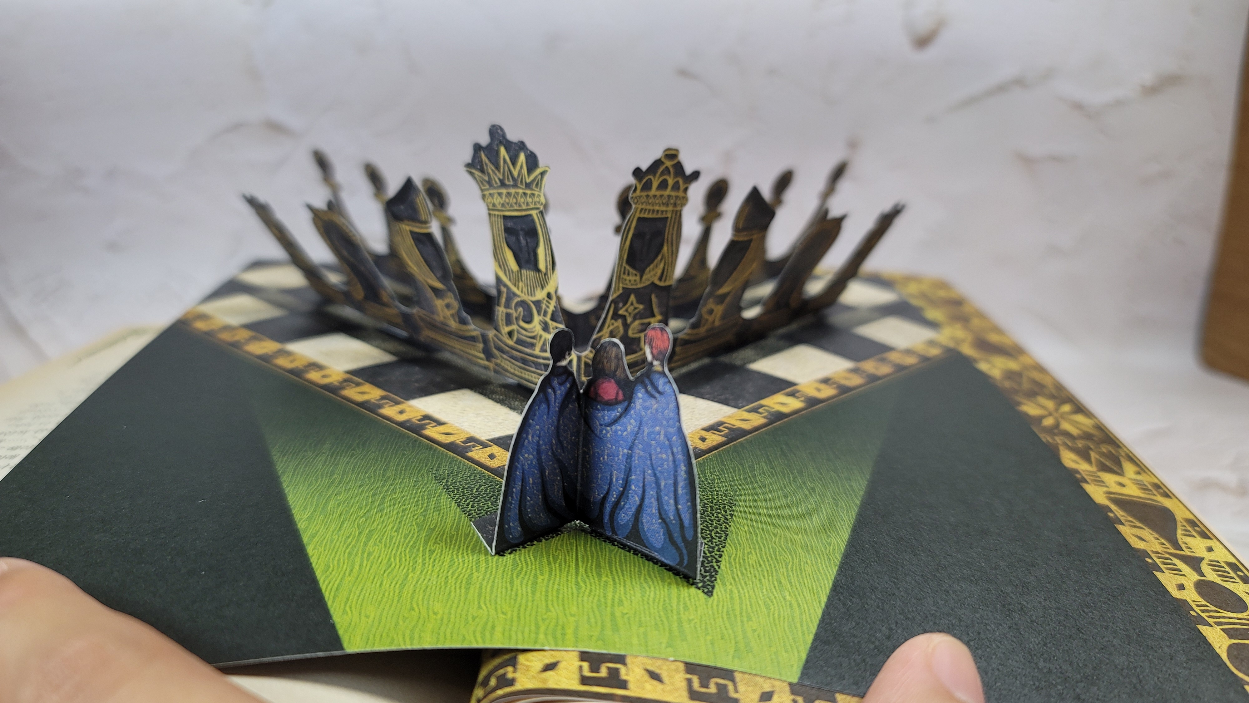 삼총사가 대형 체스판에서 체스를 두는 장면도 입체적으로 표현이 되어있어서