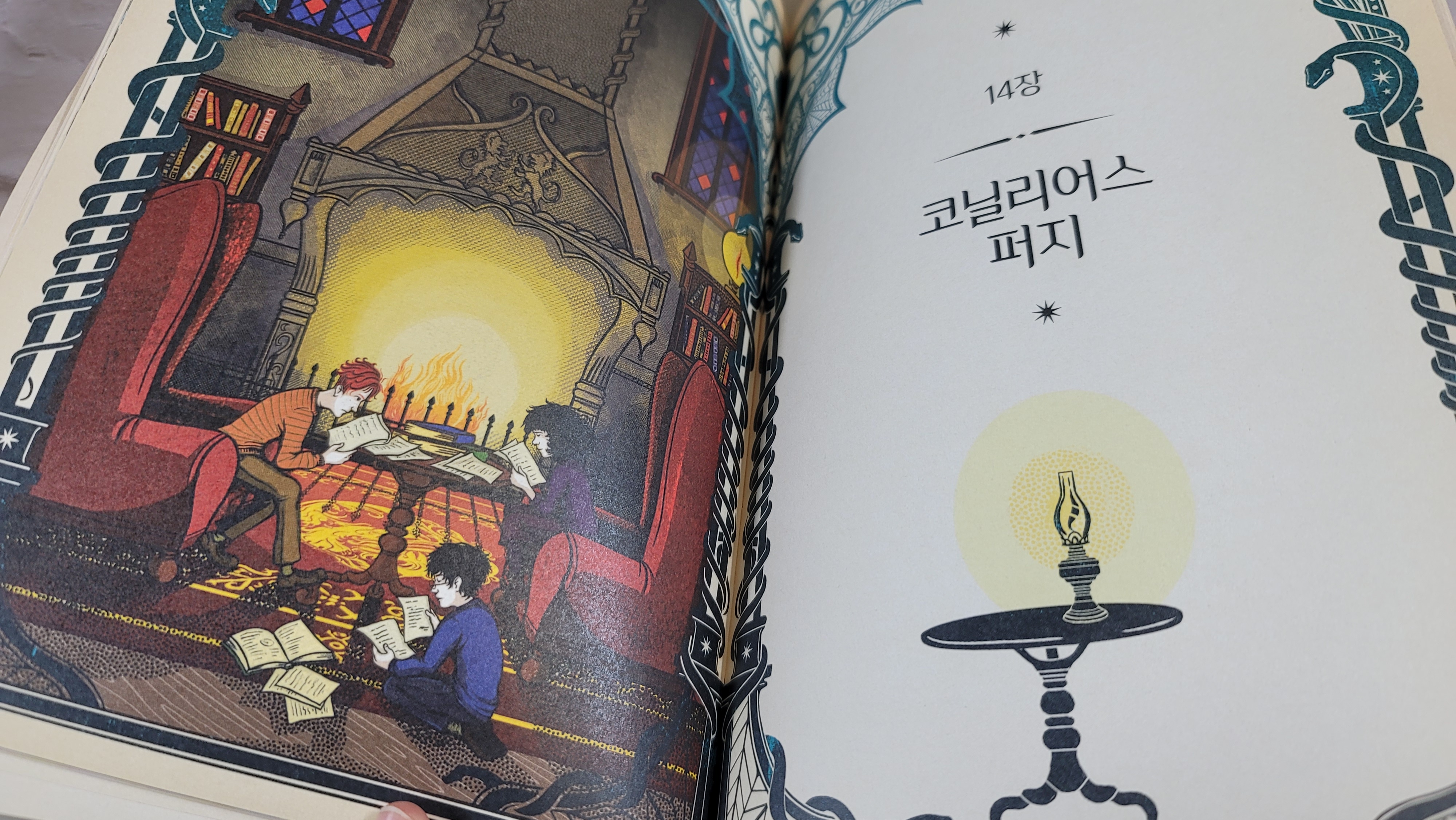 화려한 색감의 일러스트뿐만 아니라, 해리 포터스러운 폰트와 해리 포터스러운 테두리도 멋있었다