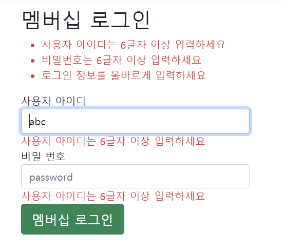 [MinLength(6, ErrorMessage = "사용자 아이디는 6글자 이상 입력하세요")]