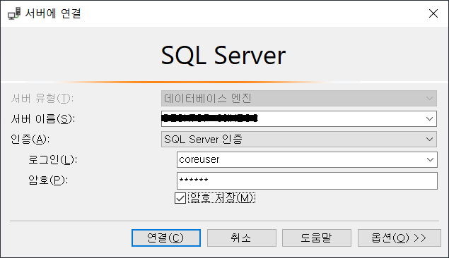 "DefaultConnection": "Server=서버이름;Database=CodeFirstDB;User Id=coreuser;Password=corepw" //4가지 접속정보