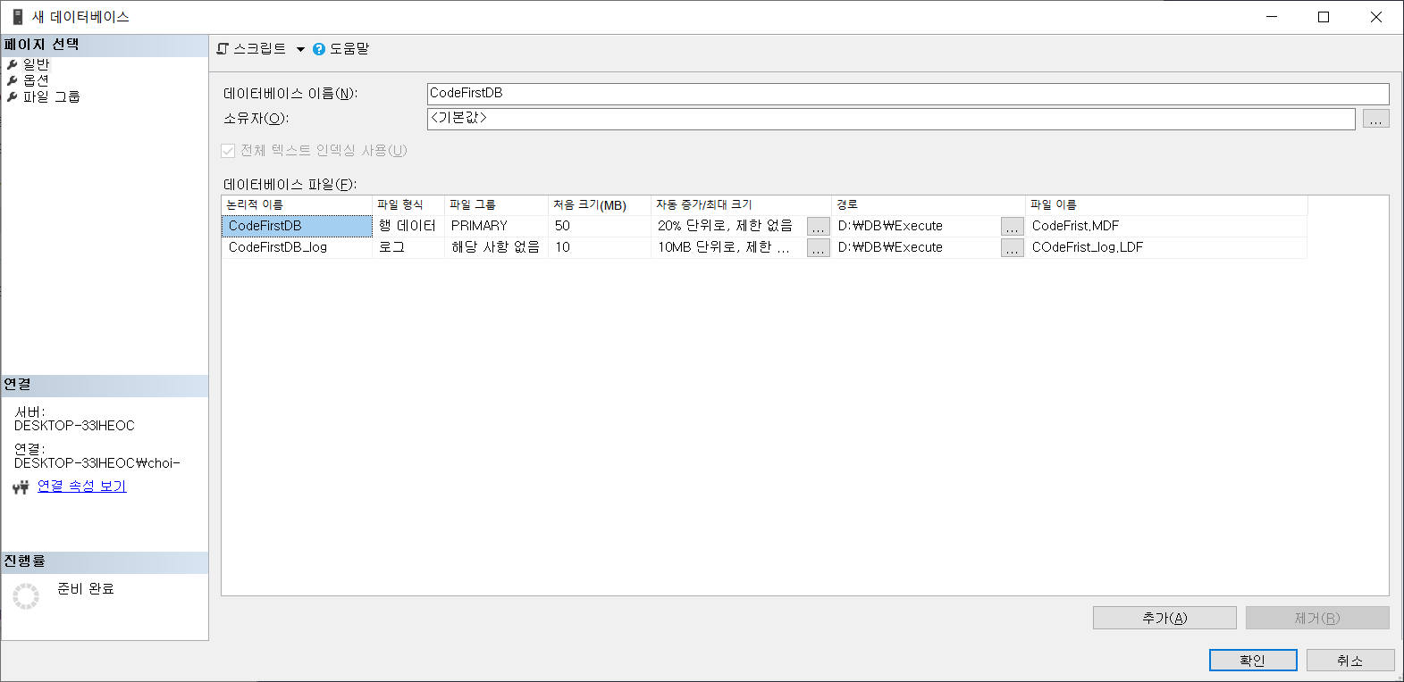 데이터베이스를 신규로 추가해준다.