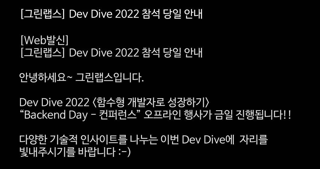 2022년 11월 8일 그린랩스에서 개최한 컨퍼런스 DevDive 2022에 참가했다.