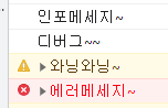 console.warn("와닝와닝~");