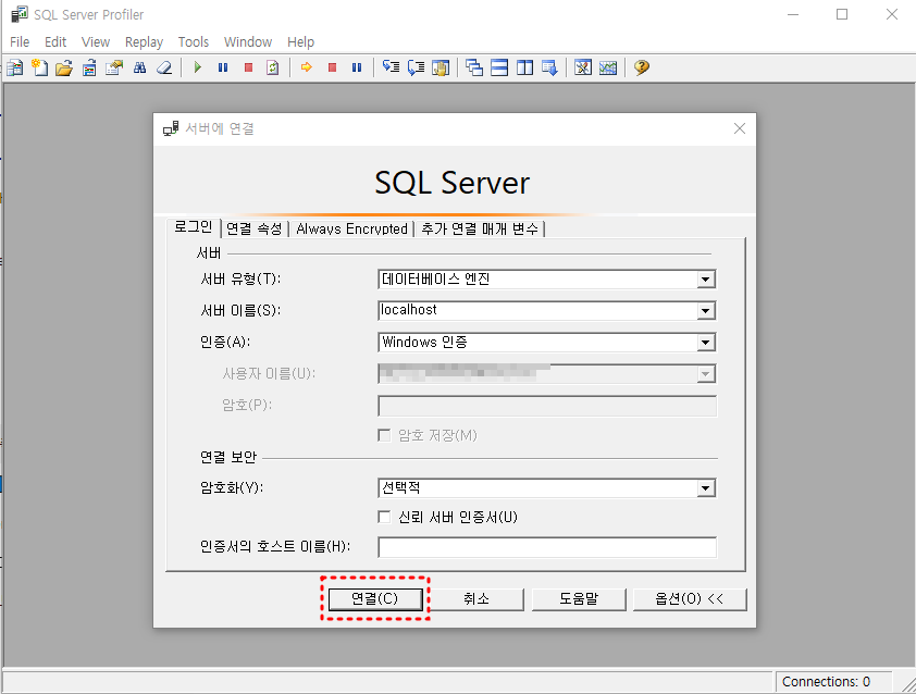3. 서버의 정보를 입력하고 연결을 누른다