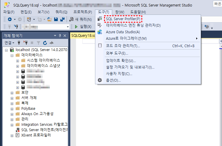 2. 도구 - SQL Server Profiler 를 선택해 Profiler를 실행한다.